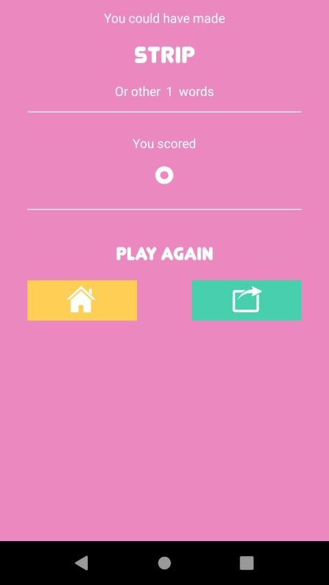5 Letter Word game where you have rush and make as many words as you can within the game timer. Every time you match a word the timer decreases its time. You will have fun improving your vocabulary and spelling skills. Your brain will thank you for the workout!