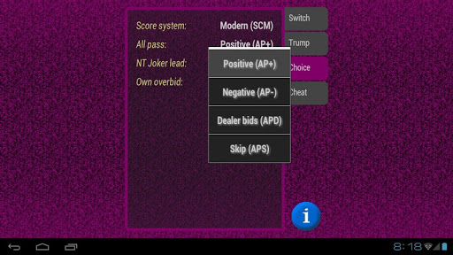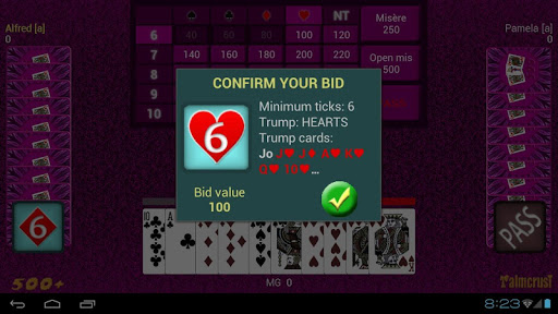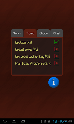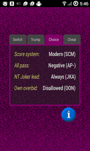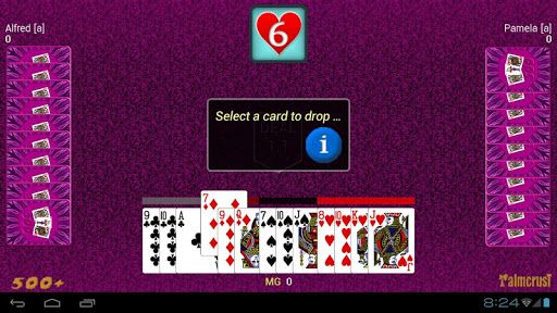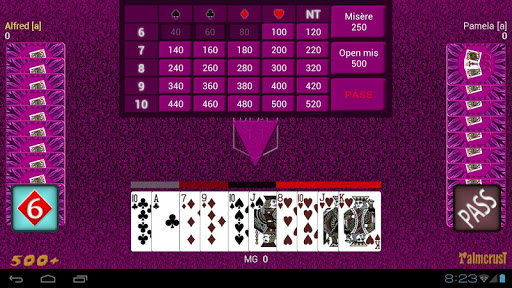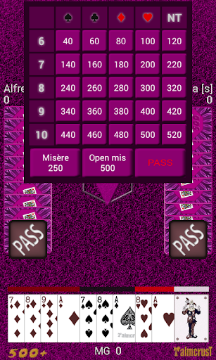 honesty: a computer player never has access to disallowed information, like seeing other players' cards (apart from contractor's cards in Open Misère), content of the kitty or discarded cards. At the same time the application provides some "cheat" options, making it unnecessary for the human player to memorize cards that went out of play, or remember which suit a particular player failed to follow.