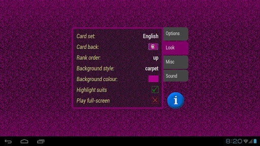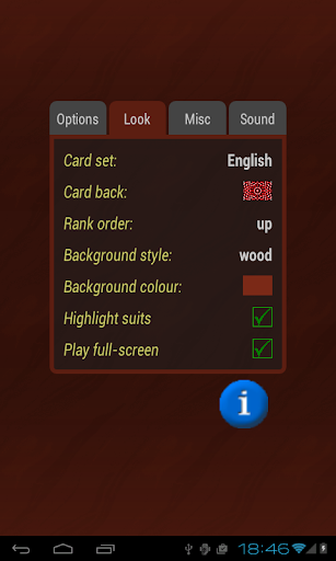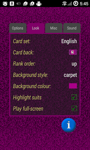 In addition to rule modifications 500 allows to set up appearance of the game (e.g. background image, style of face cards, picture of card back), customize sound effects, and specify play list for custom background music.