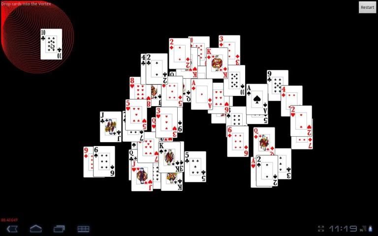 We created this card game in an attempt to learn how to make games on the android platform. This is a very simple card game and all you have to do is capture the cards by dropping them onto the "vortex". A small timer keeps track of how long you took.