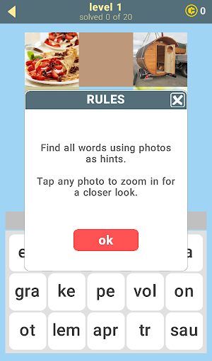 Two words per photo. 20 words per level. 580 words in the game. Can you find all of them? Sometimes you have to think beyond the obvious. Good luck!