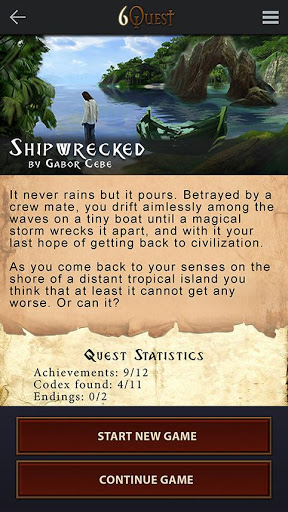 Shipwrecked, a gamebook about solving the mystery of a deserted island (Purchasable with a free demo)