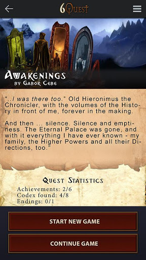 6Quest is a CYOA (choose your own adventure) style rpg game taking place in Felorian - a fantasy world of myth, adventure, swords and sorcery. This shattered world hides many text adventure quests – interactive stories featuring you as the main character. Your choices matter! Choose your story, choose your character, choose your strengths and choose your weaknesses! It’s all about your decisions in this fantasy world.