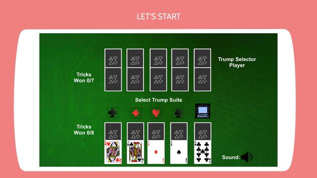 The player who selects the trump has to make more than 8 tricks to win while the other player has to make more than 7 tricks to win the game. If the player who selects the trump makes 8 hands, while the other player makes seven hands then it is a draw.