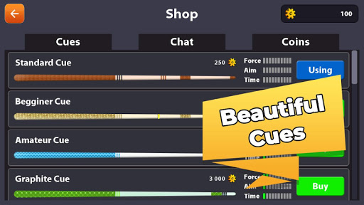 ★ Shop - buy new cues, chat messages, coins (In-App)