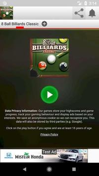 Train your billiard skills and play against the computer or your friend in this 8-ball Pool sports game! Select a difficulty that matches your abilities and start pocketing the balls. The higher the difficulty, the higher the bonus points you receive when you win a match. Aim carefully and use the zoom to adjust the spin of the cue ball. Drag the billiard cue to control the power and try to earn as many points as possible