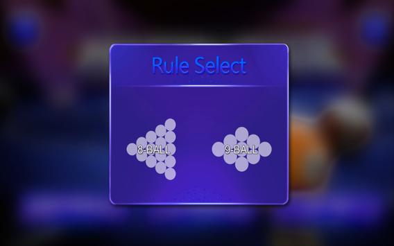 VS Mode: 8 Ball Pool and 9 Ball PoolPlay against the computer AI with standard 8 ball rules or 9 ball rules. Touch the screen to adjust the direction and drag down the power-up in the RIGHT to strike.Game Features:-