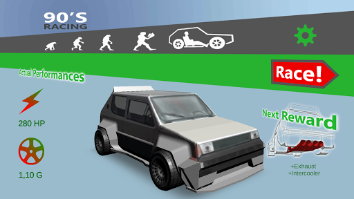 90's Racing brings you back on the old years, when turbo car was called "4 weels coffin". Starts using a friend's car, to win you own standard citycar: yes, the scramp car that your 'grampa used for a lot of years!