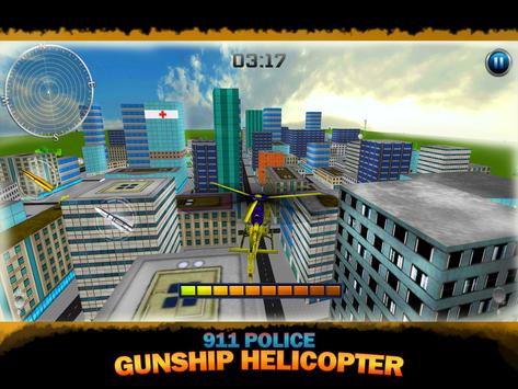 Jump into the flying action Full of thrill busting adventure while eliminating street crime rate in the city. Accomplish missions, fly 911 police helicopter through the city, shoot the criminals, target the terrorists and fly around to protect your city. Jump into the helicopter, take off to the skies and carry out the gunship battle between police vs criminals. Become a hero cop in this top secret mission. Play the role of a police officer. There is a police radio in your helicopter to keep you connected to your police force.