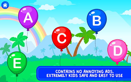 Kids love balloons, but popping them is more fun! ABC Pop the Balloon is a learning game for kids of age group 1 to 5 that helps them learn uppercase & lowercase alphabets, numbers from 1 to 20, animal names, colors and shapes.