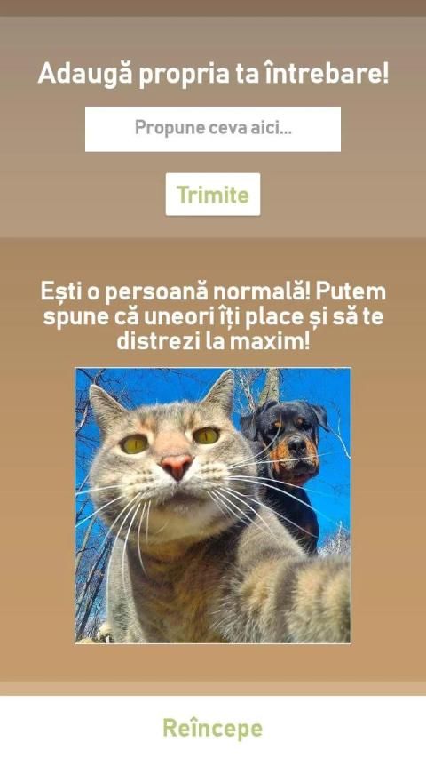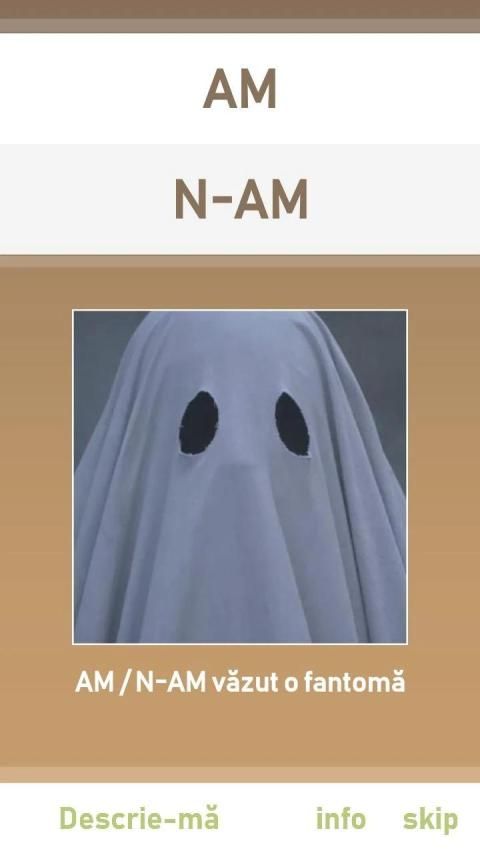 Ți-ai dorit vreodată să joci AM / N-AM și nu ai avut destule intrebări incât să te distrezi cu prietenii? Acum poți încerca noua aplicație dedicată jocului. Nu uita să citești regulile înainte să apeși pe butonul "Pune-mi o întrebare".