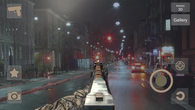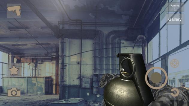 App will use preview from the camera and simulate FPS gun camera game where you can shoot real targets. Also app allow to save screenshots to the gallery.