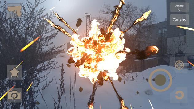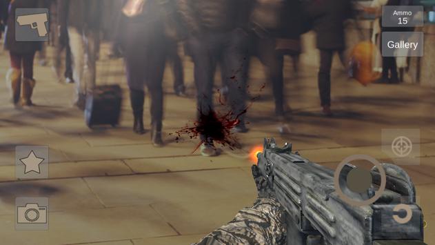 One of the main features of the app is that the damage from the shots remain on real objects. Another main feature of the app that it can recognize people (need face) and apply the blood slpash effects when the bullet hit the man.