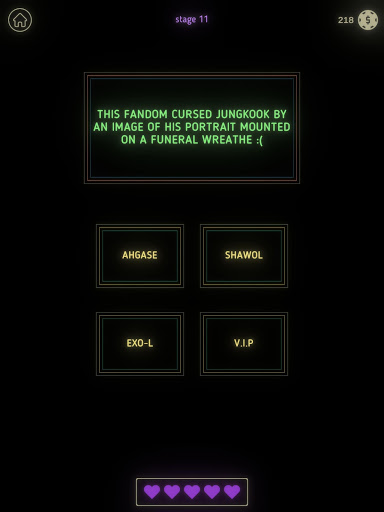 Please notice that this is a tribute game to ARMY community – who are BTS’s fans. This’s a fan made game, will not give you any songs or videos to download. It’s a level-by-level game, with many mini challenges (quiz, guess, knowledge, visual memory, find differences…) relate to the idol BTS.