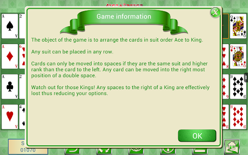 If you want a change from regular klondike, freecell, spider or pyramid solitaire games why not try Aces Spaces card solitaire.