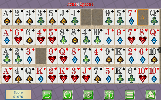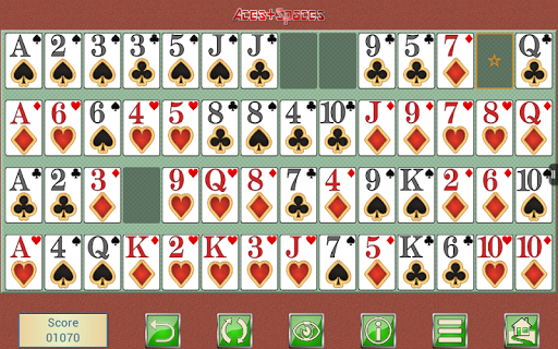 Aces Spaces is a highly addictive card solitaire game played with a standard pack of 52 playing cards providing endless hours of fun and entertainment. This classic card game is easy to play yet tricky to master so if you are up for a challenge give it a go.
