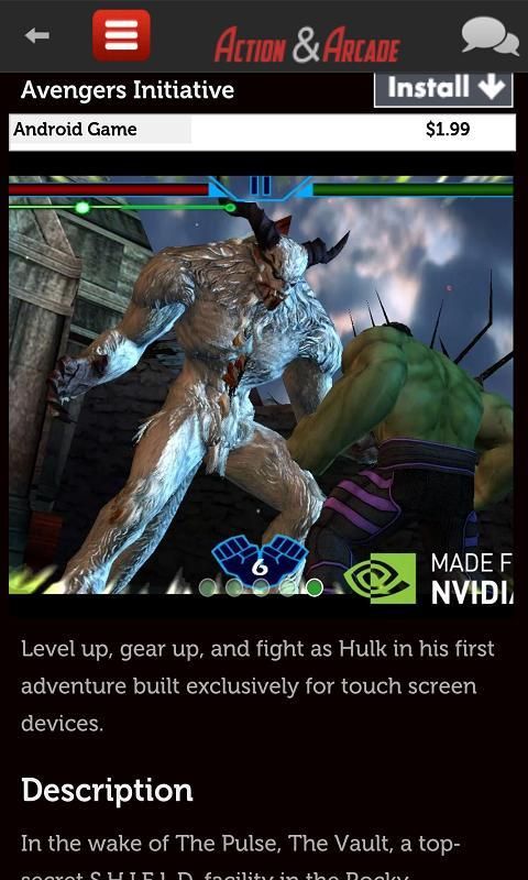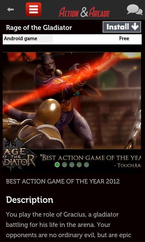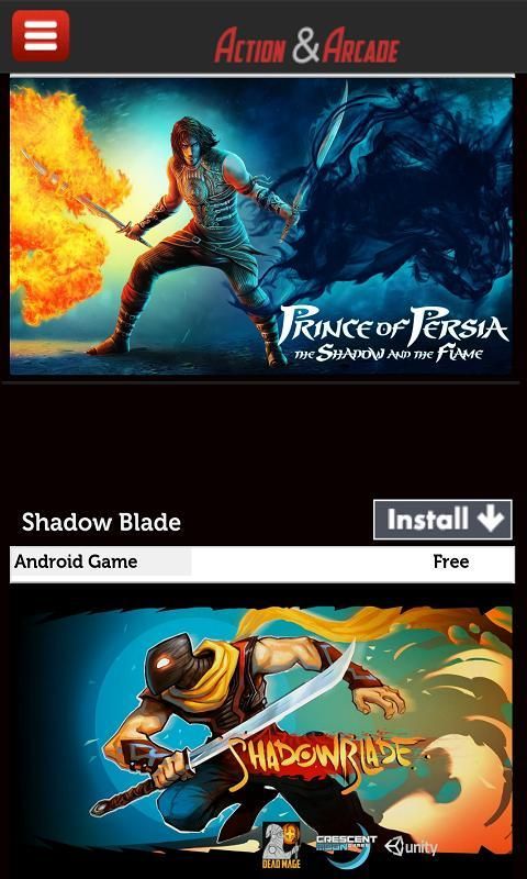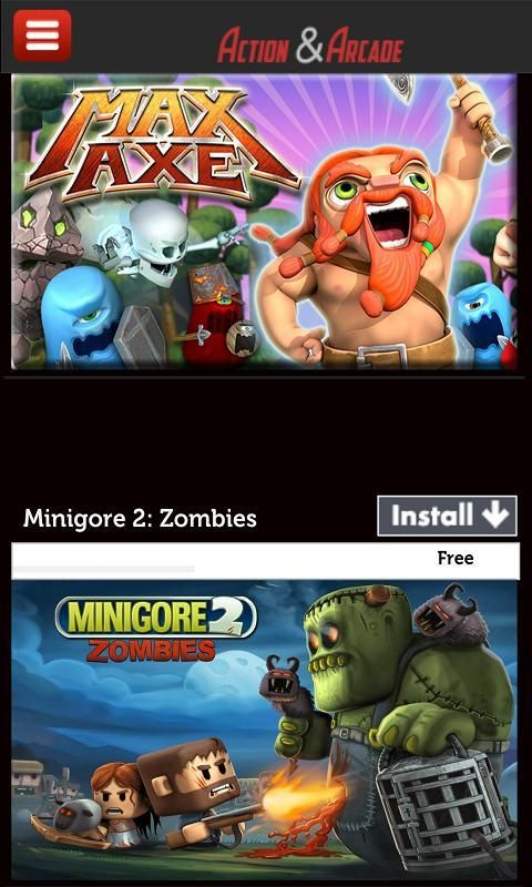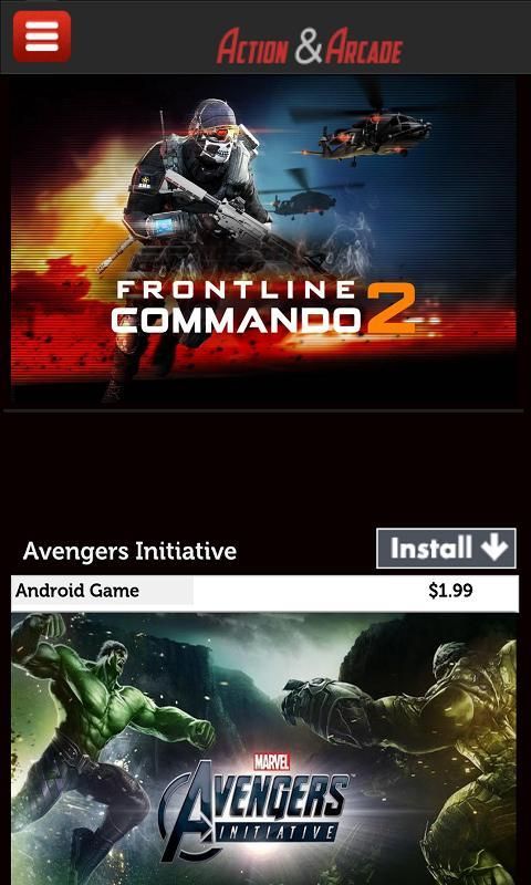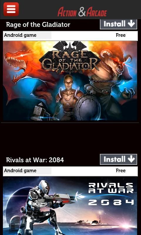 There is a list of the games. You cannot play them on the list, with 'install' you will be directed to the android market. Our aim is to save you from the stuff games and to make access to the most popular arcade & action games easy.