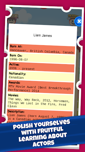 If your morning starts with a cup of coffee and indulging yourself in Crossword Puzzle, this is just the right app for you. It will add on to Actors list with every passing level. Add the Actors names horizontally or vertically with the help of hints. Attempt Trivia to boost the score and learn more and more Actors names plus related facts like