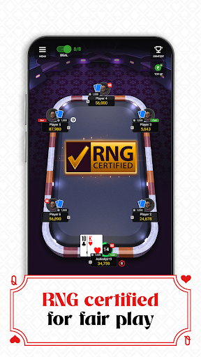 - Fair & safe gameplay- RNG (Random Number Generator) certified for fair play and random distribution of cards on the Poker table.
