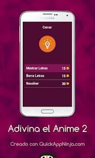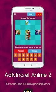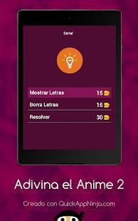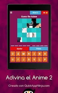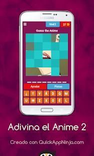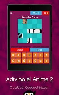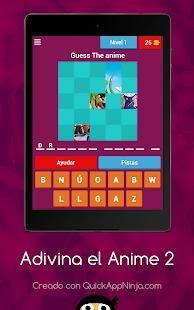 Adivina el Anime 2 es un juego que consiste en adivinar el nombre de la serie de anime que aparece en la imagen. Con más de 40 niveles, a medida que avanzas en el anime será cada vez más difícil poner a prueba tu conocimiento real sobre esta serie japonesa.