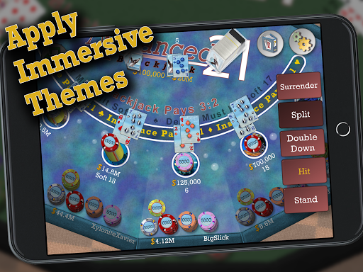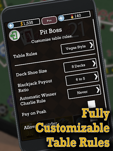 Advanced 21 Blackjack is the most realistic, free way to play twenty-one without setting foot a casino. With customizable table rules, graphics and play style, this blackjack game provides thousands of hours of playtime, strategy building and fun!