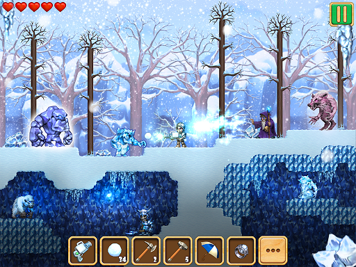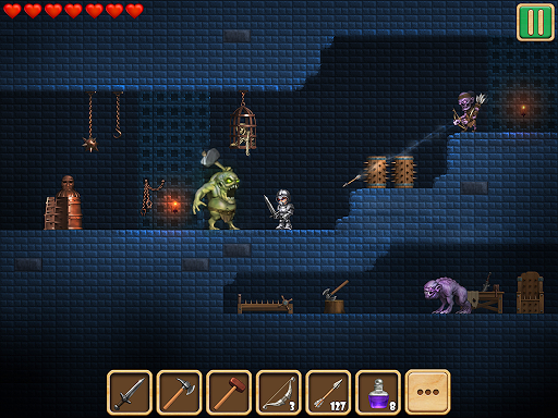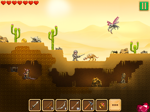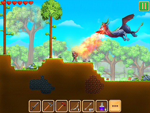 • Mine dirt, stone and items with the pickaxe. Destroy pixel walls with hammer.
