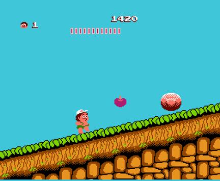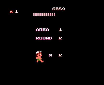 The game ends when all of Higgins' lives runs out. To replenish his health, Higgins can pick up numerous fruits (or a milk bottle) on his path (his maximum health reaches up to 13 points). When the player's score reaches 50,000 points, 100,000 points, and 200,000 points, Higgins will receive an extra life.