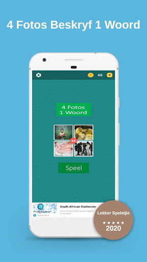 If you enjoy Afrikaans word games, then you will really love this one. The game is called 4 Fotos 1 Woord and is loaded with game levels for hours of endless enjoyment.