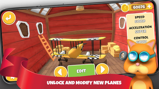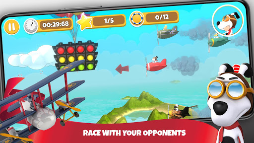 Pets & Planes - Air Race is a racing game with stunning 3D graphics and original fun game mechanics. The aim of the game is to win the race by aviating your plane, passing your opponents and completing the tracks. You can improve your pilot and modify your plane to perform better maneuvers and speed in the sky. Collect turbo, additional time powerups and gold in the sky, pass the checkpoints in the right order in front of your opponents and complete the levels.