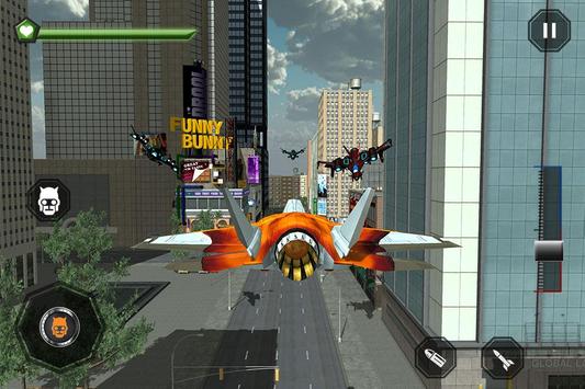 The Interesting missions, open map, flying bots & the combat action in this flying robot simulator cannot be found in other air robot games. Face the exceptional challenges as you control the super robot & fight against the fighter plane in this finest of jet robot games. If you love playing future robot games with fly Bot then this airplane robot simulator is going to blow your mind away at it is nothing like other future robot games or transform robot games. Get ready to fight space robots in this brand new addition to robot transforming games. Become an air robot to rule the world of transforming jet games and combat with fly bots. Future wars will bring the human race to its end and the world will be owned by machines and transform robots. Wage war upon the enemy with airplane robots and help airline police in its mission in this very best robot games in the world.