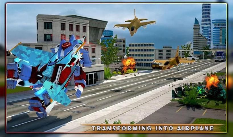 Game play of this f16 flight simulator is very fascinating and interesting. Initially you as a robot will fight with other robotic enemies and there is a runway you need to locate it where the robot can convert into fighter plane and can take off to have air battle to demolish other fighter jets. This is not an ordinary game like robot car simulator or moto robot transformation; it is robot fighter jet the king of airplane robot transforming games. You need to be an excellent fighter pilot and show off your best flight skills to fly this robot jet simulator.