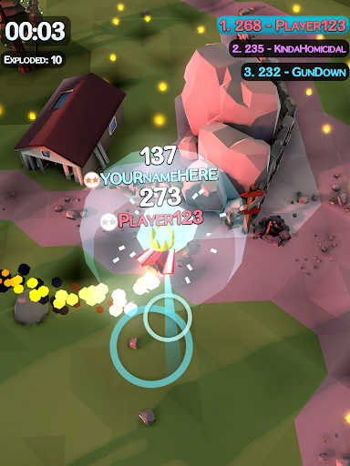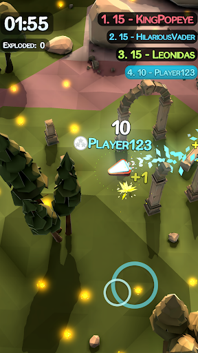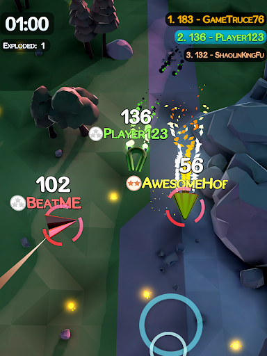 So, you have 2 minutes to become the best one! There are 6 opponents to you. Just rush and collect points, explode enemies and be on the top.