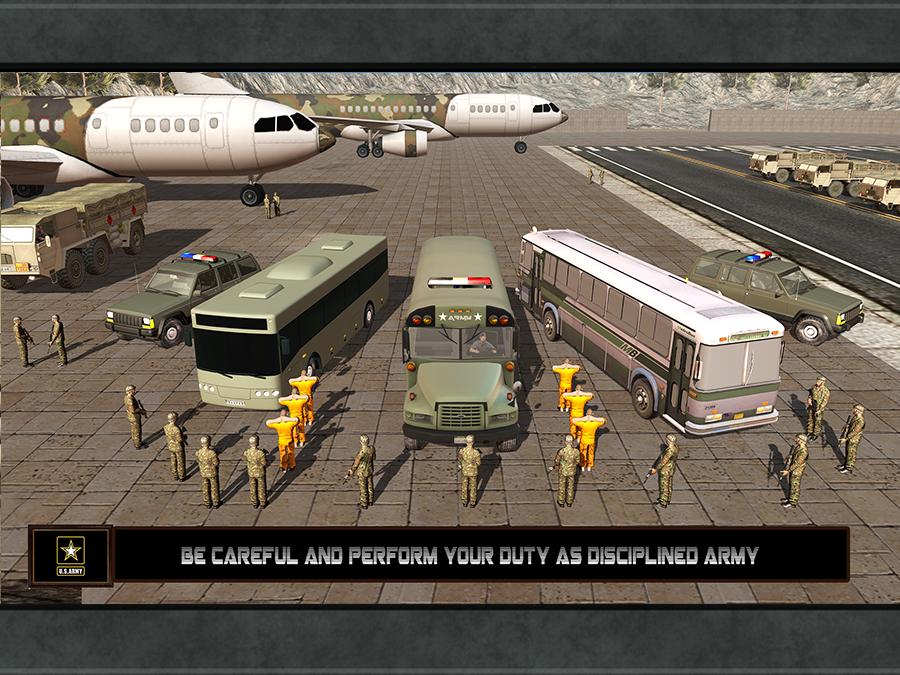 Hire army airport bus and move toward airport with your best commando team inform the army chief of your arrival to other country where you are going sit in army helicopter cockpit and start move toward the sky stay connect with army base of other country and make a safe landing on abroad airport. Sit inside the airport bus and move toward the army hotel, trained your commandos for army operation and choose best commandos for undercover mission at night for getting all information about the don and start your army mission. Use the best sniper to make operation against mafia after successful army chief commanding operation inform your army about victory and take father of gang for airport in your army bus with his criminal companions. Your army bus is waiting on airport for your arrival after landing take don toward the arm jail in full tight security and make a blasting case against him. Keep the don in jail with security cameras and not give permission to anyone to meet with him. Some prisoners are waiting for you on airport so drive your airport bus and transport the airport criminals