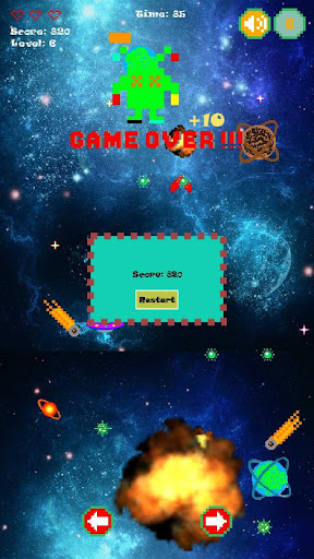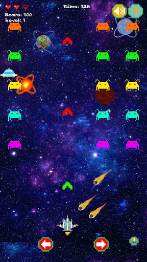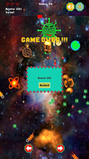 - Press left and right arrow buttons on screen to move your ship to left and right side.