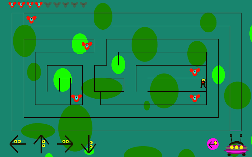 AlienMaze is a fun game for children featuring silly alien creatures who travel through mazes as they hunt for food with the goal of reaching their spaceship at the end. This game consists of three levels. Level 1 is easy, Level 2 is medium, and Level 3 is hard. Each level is divided into six sublevels.