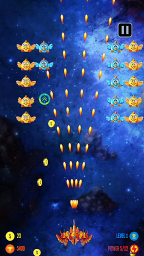 Earth is in Danger, shoot them all Alien chickens. Your goal will be quite challenging as you will have to save the Universe from its evil chicken enemies. In this space shooting game, you will be facing an increasingly large number of enemies in hazardous environments. As the game progresses, you will earn the right to upgrade your spacecraft to unleash its full lethal capacity.