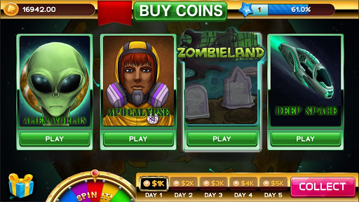 Come join the fun with Alien Slots, a free slot casino game that has great graphics and smooth gameplay. Spin the smooth reels and enjoy free spins, level up, and bonus games. Get free daily bonuses and enjoy multiple futuristic and scifi themes including Alien Slots Post-Apocalypse, Zombies, and Deep Space.