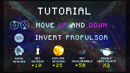 Survive the dangers of the space in this casual and challenging game! Dodge the meteors as long as you can and get oxygen bottles to stay alive! Special bonus like sun and other planets increase your points and do some crazy stuff!