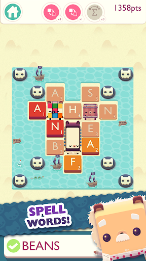 When you solve the word puzzles, you'll earn new bears for your permanent collection. These bears increase the points you earn from spelling words, extend your timer, modify the game board to your advantage, and more.