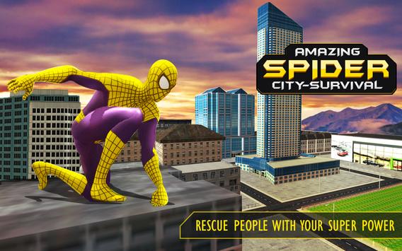 Do you ever wanted to be Amazing Spider Superhero for City Survival? Do you ever dreamed to be a flying superhero like amazing spider? Or do you ever think to be any kind of superhero? Now it's time to make your dreams come true because the crime rate in city is on it's extreme and you are going to rescue citizens with your flying spider superhero abilities. Police and army forces are unable to handle the crime city and criminals are again trying to harm your survival city. You have to act like city police hero for the ultimate survival of big city with your amazing flying spider superhero powers. It's time to turn on the real time adventure of flying superhero in spiderman avatar. Enjoy super amazing skills of amazing spider superhero skills.