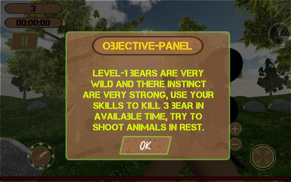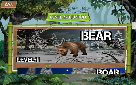 You start your hunting adventure with level 1 in which you have to kill the bears and earn coins. Every level has different animal. These wild animals are roaming around in the forest that you have to trace with the help of mini map, take the aim and then shoot at them before they invade and kill you. On your first shoot, the surrounding animals get vigilant and start running towards you to attack on you. You have to kill them before they reach you. You have to kill certain number of animals at each level within the given timeframe. If you don’t, you will not be able to earn coins and unlock the next level.