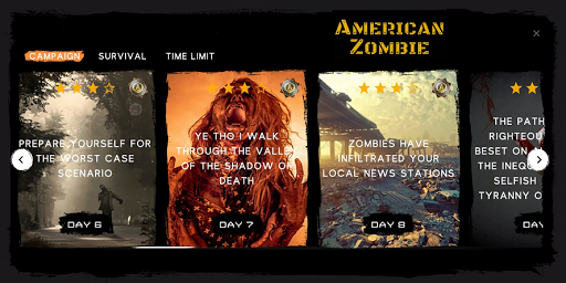 American Zombie: New World Disorder. An Augmented Reality FPS Thriller. AR GAME takes the player through the HORRIFYING first month of the zombie apocalypse. Featuring 360 degree game play. Player must be aware of surroundings because zombies will approach from all directions. Can you survive the first 30 days. Download American Zombie: New World Disorder today.