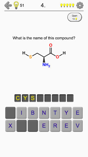 The app is translated into 8 languages, including English, German, Spanish and many others. So you can learn the names of the amino acids in any of them.