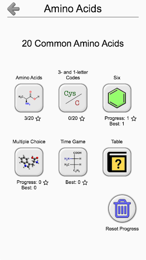This app is the easiest and the most efficient way to learn the structures, codes, and properties of 20 standard amino acids (lysine, valine, threonine, and so on) and more than 20 related compounds (such as ornithine, taurine, cystine and others).