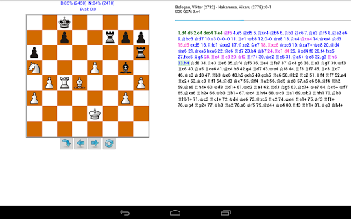 During analysis phase it is possible to interact with the gameboard and the moves, being both parts synchronized by default. At any time the analysis can be interrupted and resumed later on without losing the data. It is also possible to analyze in background or even while screen is off.