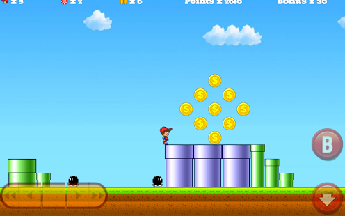 ANDY´S WORLD will remind you the legendary arcade Super Mario Bros, with very high quality and colorful graphics, you'll have to collect all the coins you can in different screens dodging and eliminating all the enemies that cross in your way. Enjoy the 19 awesome platform levels with hidden lives in all the levels that we made for you!