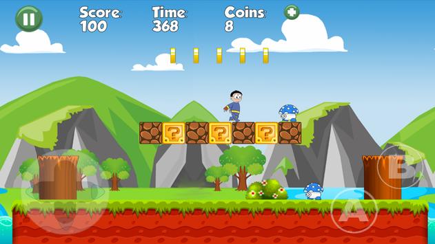 nobita Run and jump over obstacles and avoid pits, collect Points ,Coins