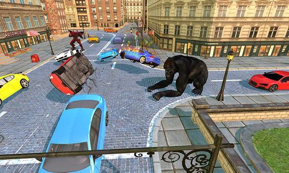 Monkey wild apes fighting in the middle of the city, create havoc, assemble the other angry gorilla robots and start monkey wild apes fighting.