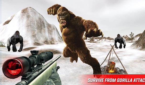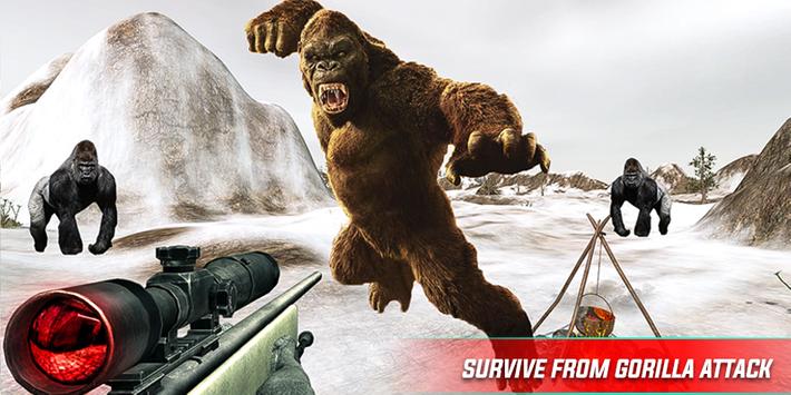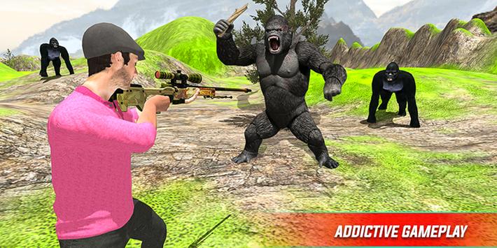 Angry gorilla's are going crazy and mad so be a hero hunter of king kong in the wild gorilla rampage game and survive to destroy the beast gorilla clans. Show your sniper shooting skills to kill these wild angry animals like king kong. Train yourself as a master hunter and hunt these wild chimpanzee before they kill you in anger. You are stuck in the wild environment where wild gorillas are all over the jungle and they are angry, mad, crazy & wild. You can download and install this Angry King kong attack wild animal shooting game for free.