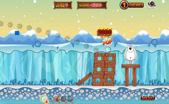 • You must aim it to hit the target (the polar bears.) you must crush EVERY bears on the level.